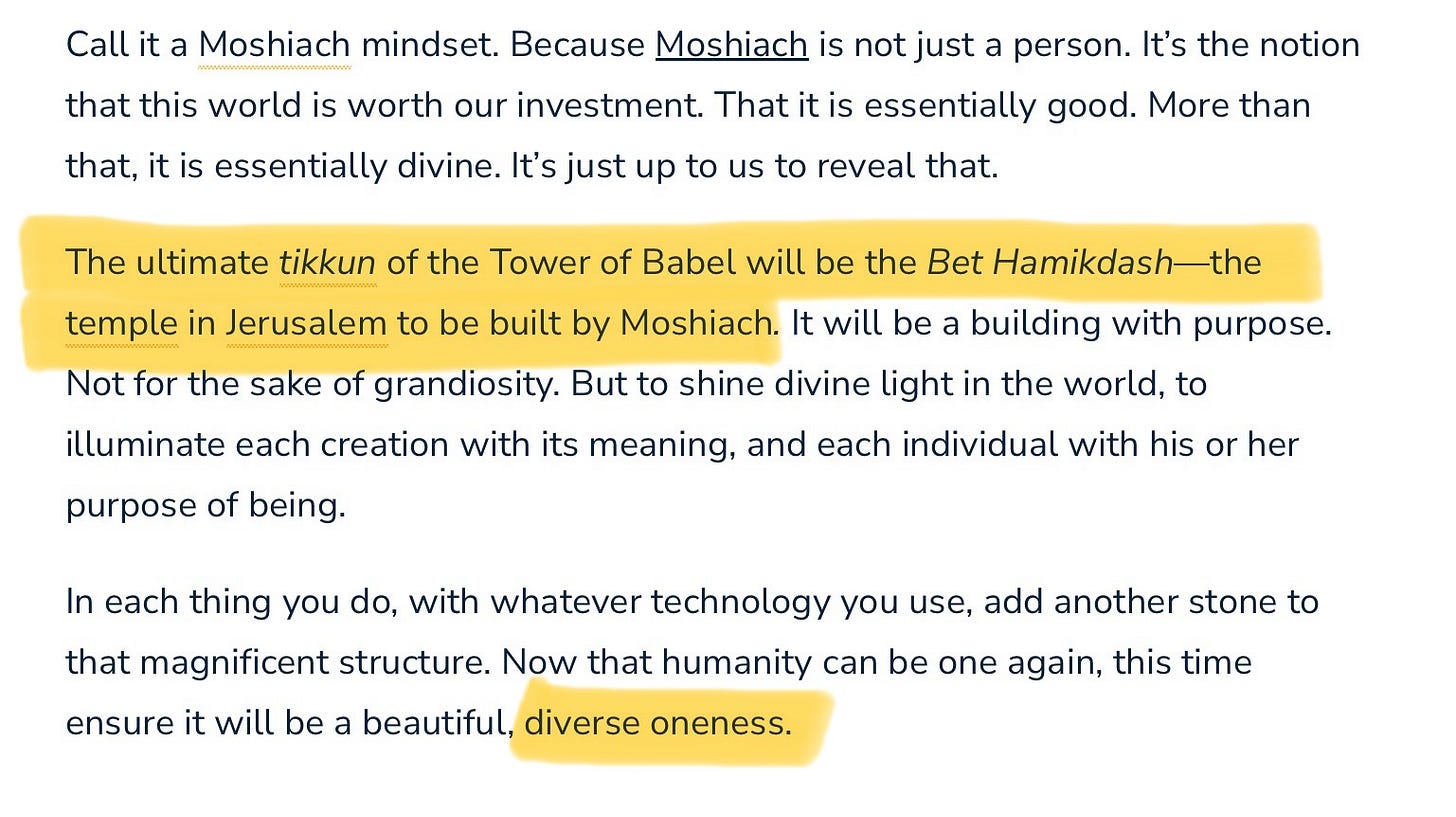 After all, Jews don’t believe building the Tower of Babel was a bad thing – it just needs to be “perfected”.